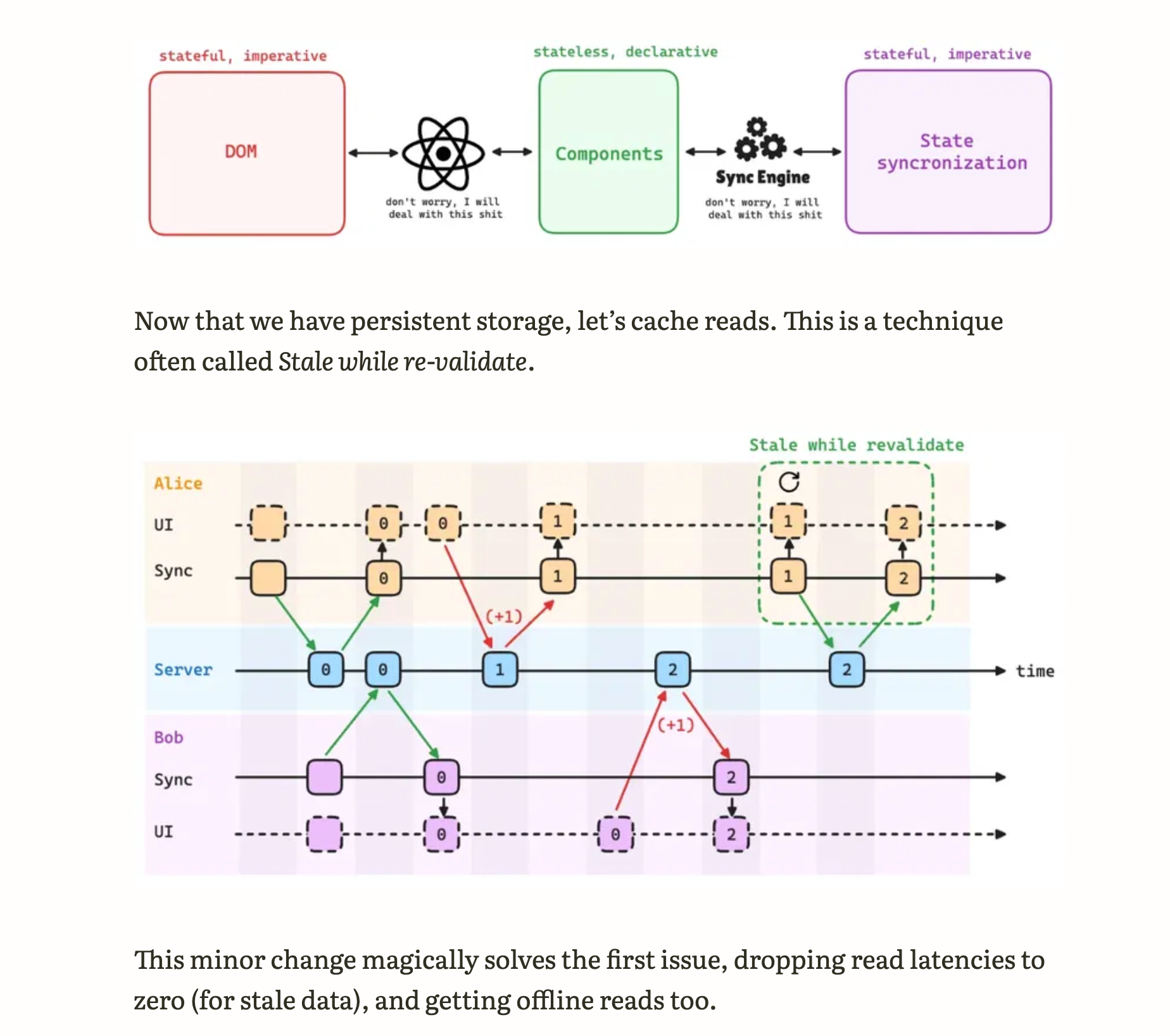 Problem: Writes, making all interactions feel laggy and without offline support. Solution: