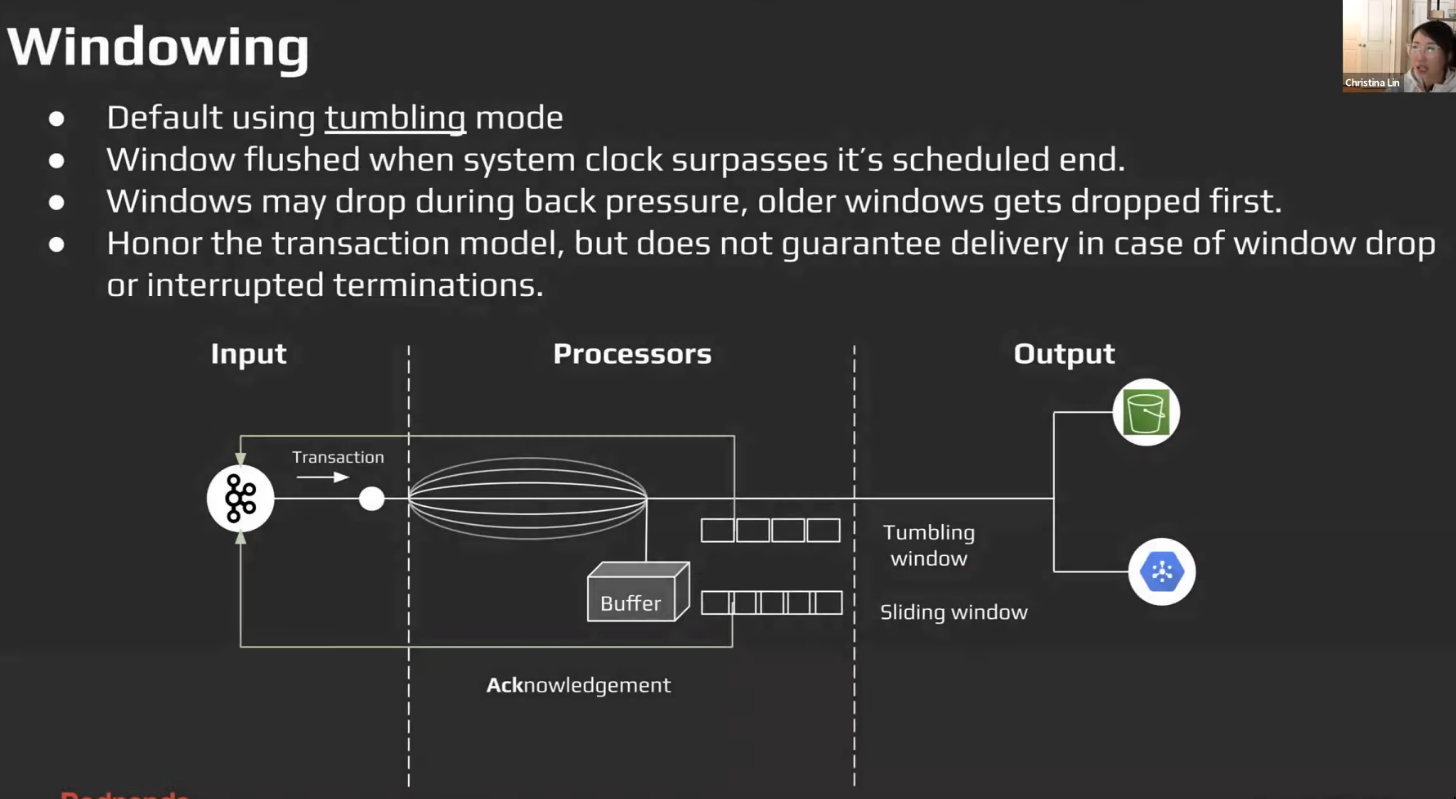 Tumbling window: No overlapSliding window: Overlap- config needed: